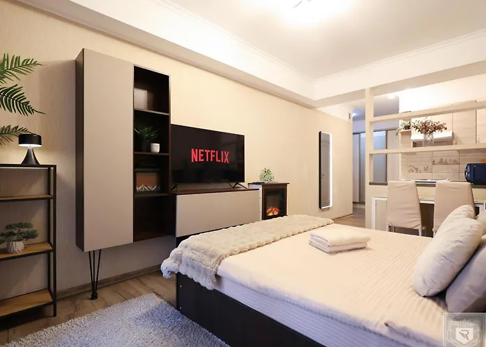 The 40 m² Renthouse Apartments Relax Studio Chisinau is located 2.5 km from the white stone Triumphal Arch and about a 25-minute walk from National Opera and Ballet Theater.